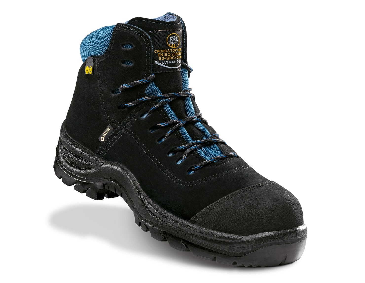 Bota en piel nobuck y cordura hidrofugada. Forro Gore-Tex. Puntera no metálica Vincap. Plantilla antiperforación textil. Suela de poliuretano bidensidad con nivel de deslizamiento SRC.